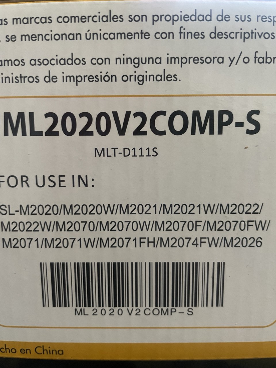 ML2020V2COMP-S Cartucho de Toner 111S (MLT-D111S) versión 2 Negro Calidad Premium para 1,000 páginas.