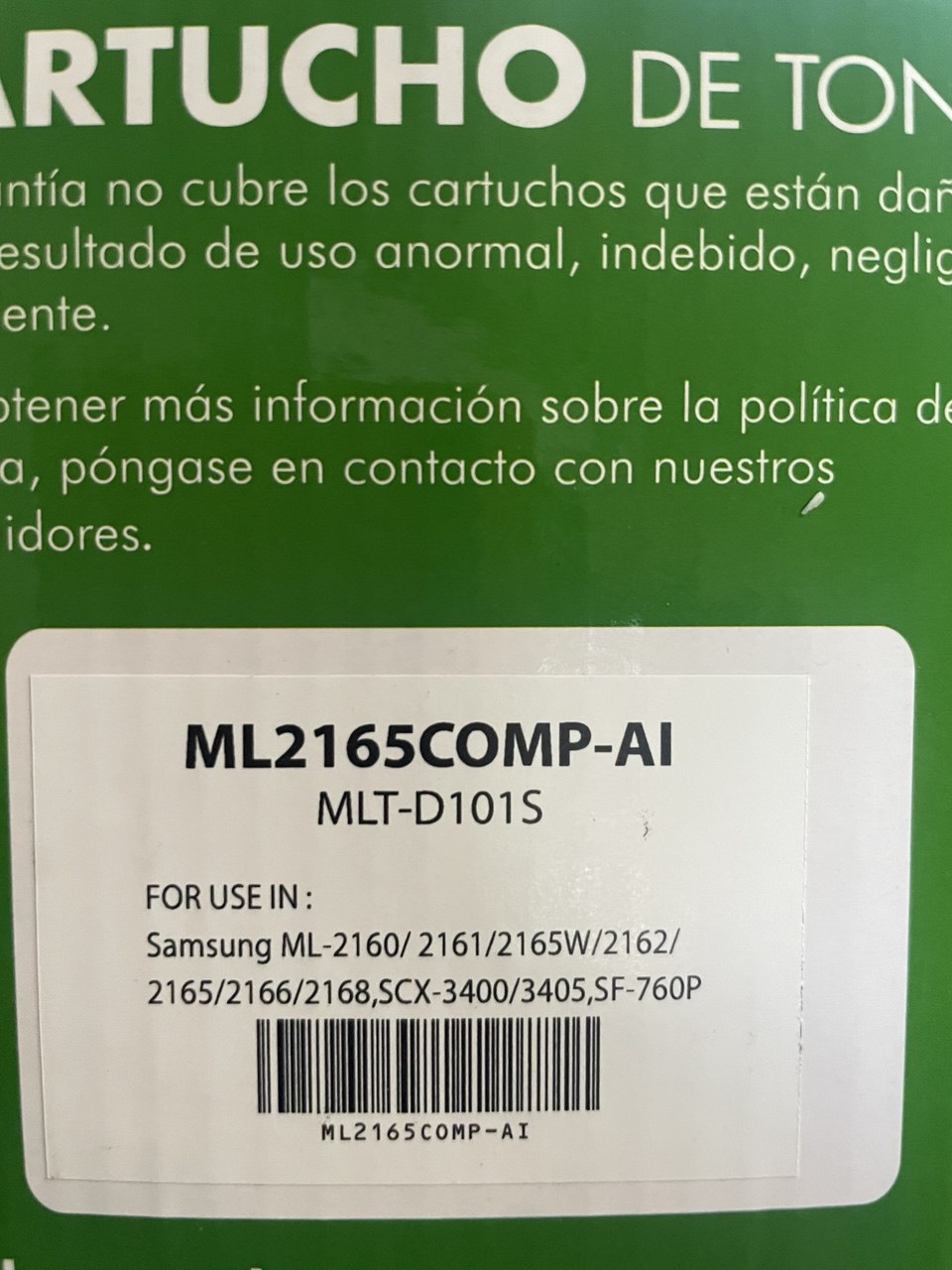 ML2165COMP-AI Cartucho de Toner 101S (MLT-D101S) Negro Calidad Estándar para 1,500 páginas.